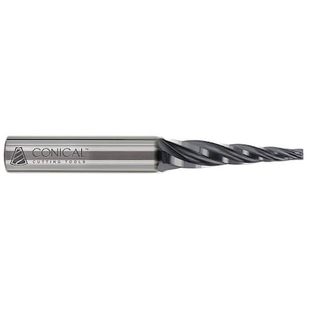 Conical Tool Company G-253C-XL 7.0° Carbide Tapered End Mill - 3 Flute x 5/32'' Tip x 0.3404'' Large Diameter x 3/8'' Shank x 3/4'' Length of Cut x 3'' Overall Length