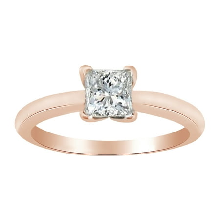 <ul> <li>Metal: Rose Gold With 14K Metal Stamp</li> <li>Stone: White Natural Diamond (Not-Treated)</li> <li>Stone Color: White, Stone Clarity: I2</li> <li>Total Carat Weight: 0.25 Ct, Stone Shape: princess</li> <li>Stone Setting: prongs</li> </ul>