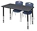Regency MT4830GYAPBK40NV Kee Height Adjustable Classroom Table Set with Two 18" Andy Chairs, 48" x 30", Grey/Navy
