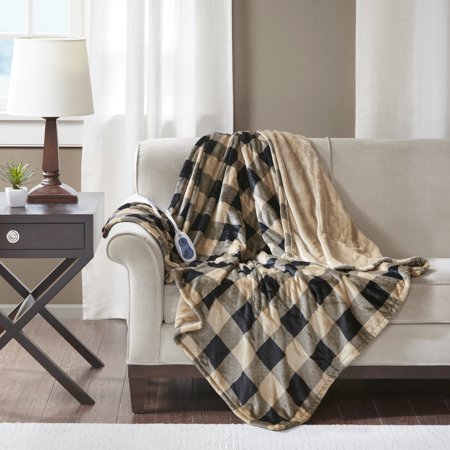 <h2> Comfort Classics Buffalo Check Oversized Heated Plush Throw:</h2> <ul> <li> Includes 1 Oversized Electric Heated Throw </li> <li> Dimension: 60W x 70L</li> <li> Material Details: Printed Microlight Plush Face, Solid Microlight Reverse; 100% Polyester</li> <li> Heated Throw; Electric Throw</li> <li> Soft Flexible wires; Ultra Soft Plush</li> <li> Pattern/Design: Geometric</li> <li> Home Decor Style: Casual</li> <li> Emits virtually no electromagnetic field emissions</li> <li> 3 Heat Settings Temperature Control; 2 hour auto shut off</li> <li> Secure Comfort Heated Technology</li> <li> CARE INSTRUCTIONS: MACHINE WASH COLD, GENTLE CYCLE, AND SEPARATELY. DO NOT BLEACH. TUMBLE DRY LOW, REMOVE PROMPTLY, DO NOT IRON. IF THERE IS NO FREE MOVEMENT IN THE WASHER OR DRYER, USE LARGE CAPACITY COMMERCIAL WASHER/DRYER.</li> </ul>