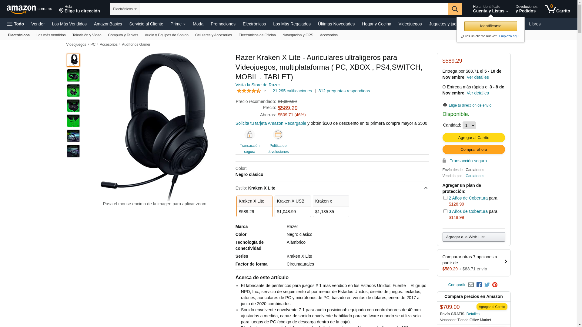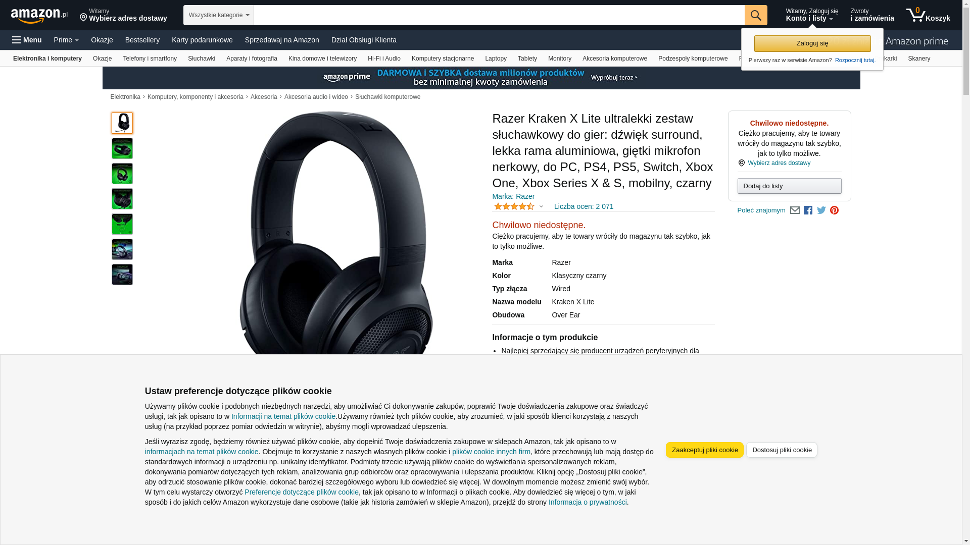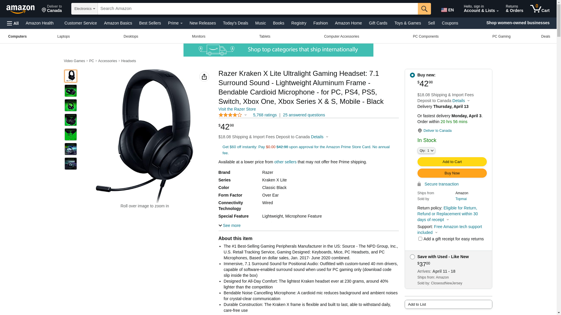 Razer Kraken X Lite Ultralight Gaming Headset: 7.1 Surround Sound - Lightweight Aluminum Frame - Bendable Cardioid Microphone - for PC, PS4, PS5, Switch, Xbox One, Xbox Series X & S, Mobile - Black