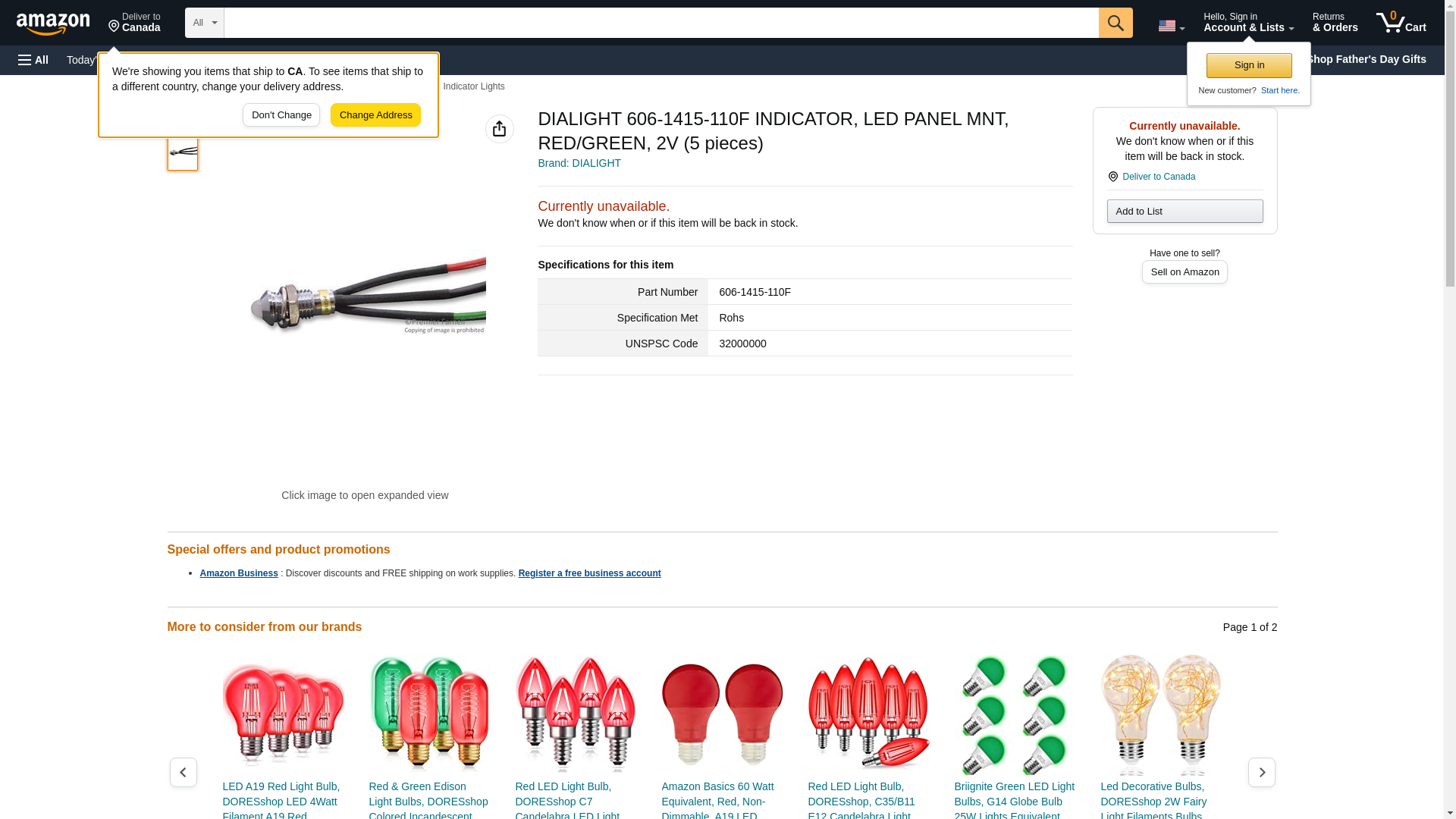 Dialight 606-1415-110F INDICATOR, LED PANEL MOUNT, 6MM MOUNTING HOLE, 2V, RED/GREEN (500 pieces)