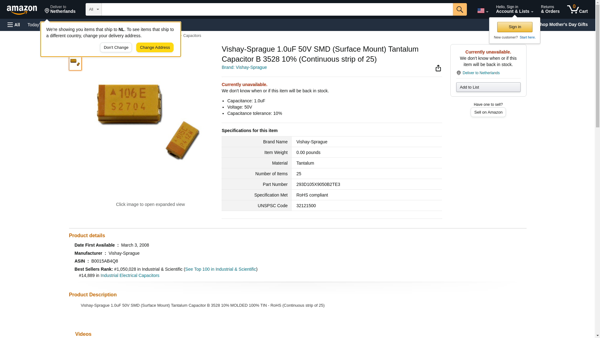 | 293D105X9050B2TE3 | 2 | 1963 | 2 | 2 @ $0.65, 10 @ $0.35, 100 @ $0.26, 500 @ $0.23, 2000 @ $0.22 | |