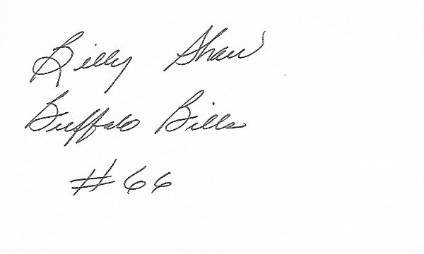 Real Deal Memorabilia BShaw3x5-1 Billy Shaw Signed - Autographed Buffalo Bills 3 x 5 in. Index Card - Pro Football Hall