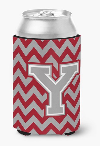 Carolines Treasures CJ1043-YCC Letter Y Chevron Crimson & Grey Can or Bottle Hugger