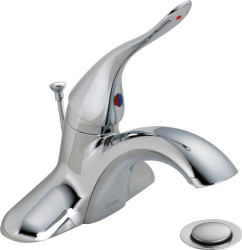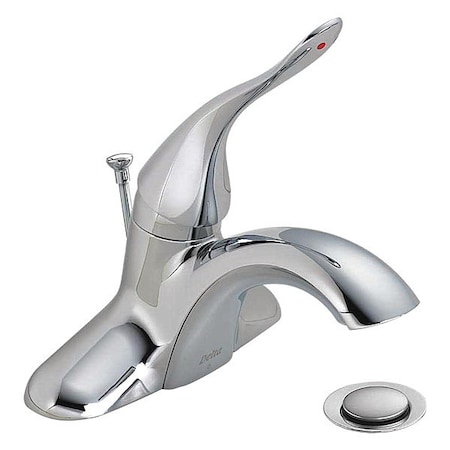 Single Handle 1.5 GPM Low Lead Lavatory Faucet with 6" Handle and Pop-Up Assembly from the Commercial Series Product Features and Benefits : Made in the U.S.A. (Manufacturing plants: Greenburg, Indiana; Jackson, Tennessee) Vandal resistant elbow handle Adjustable handle limit stop Vandal resistant outlet 3/8" Outside Diameter PEX supply tubes 3-hole 4" installation Water Efficient Pop-up Included Delta Smart Features : ADA compliant Diamond Seal Technology WaterSense Certified Water Efficient CA/VT Low Lead Compliant Product Specifications : Number of handles : 1 Installation type : Centerset Valve type : Diamond Seal Valve Flow rate : 1.5 gpm @ 60 psi Spout length : 5" Spout total height : 4-7/8" Spout height deck to aerator : 1-11/16" Drain type : Metal pop-up