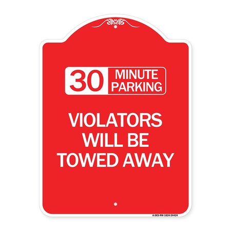 SignMission Designer Series Sign - 30 Minute Parking, Violators Will Be Towed Away | Red & White 18" X 24" Heavy-Gauge Aluminum Architectural Sign | Protect Your Business | Made in The USA