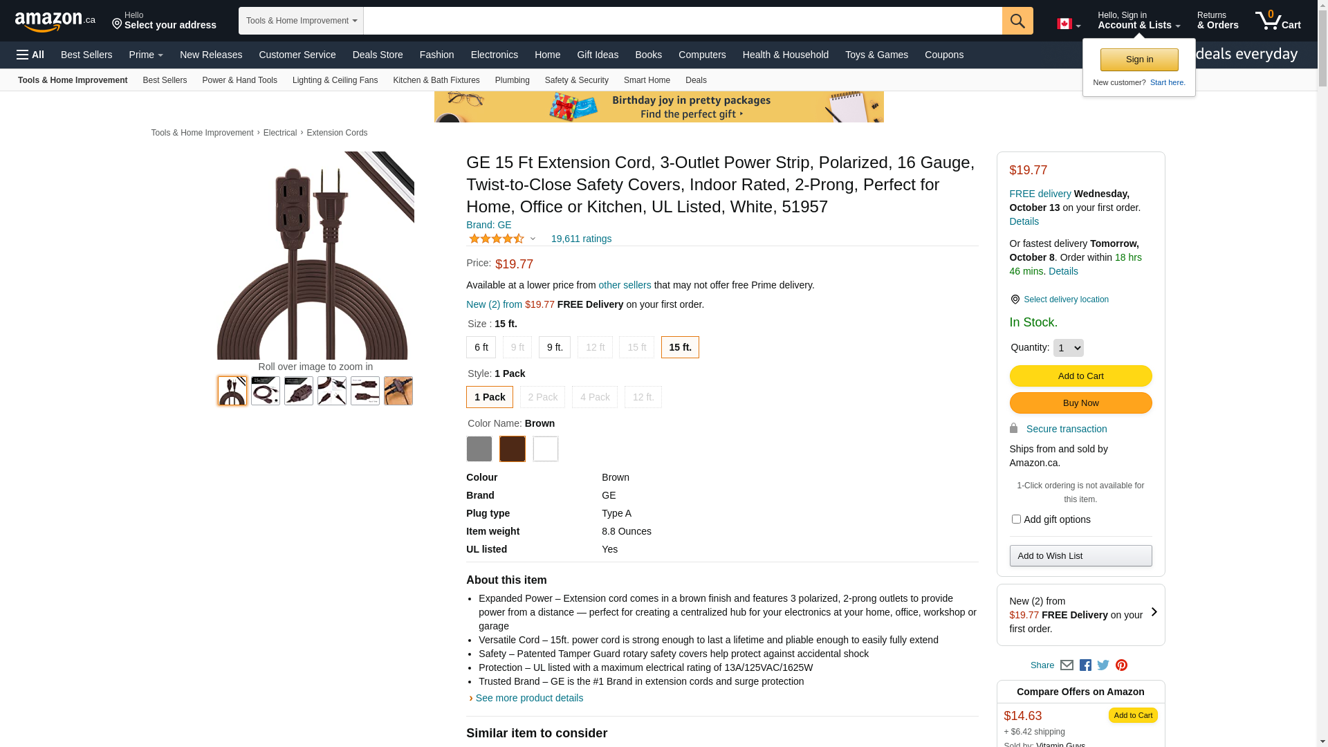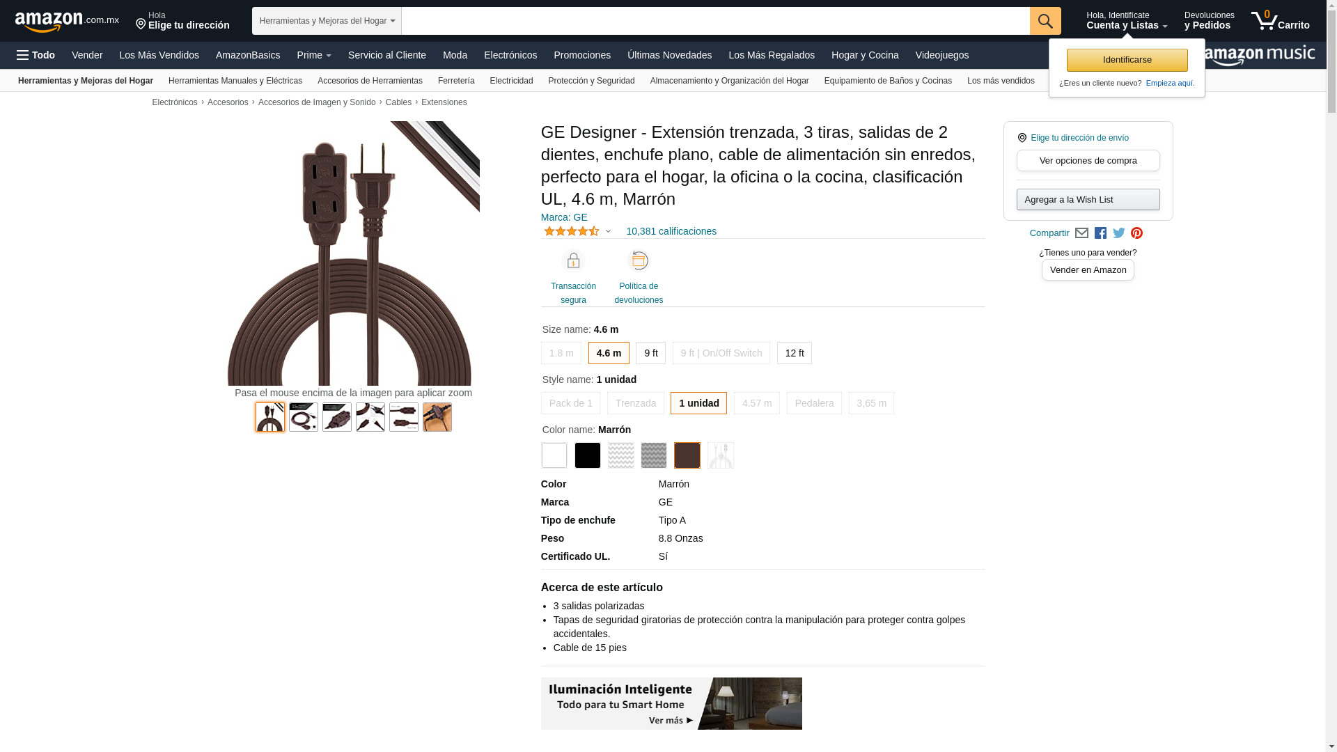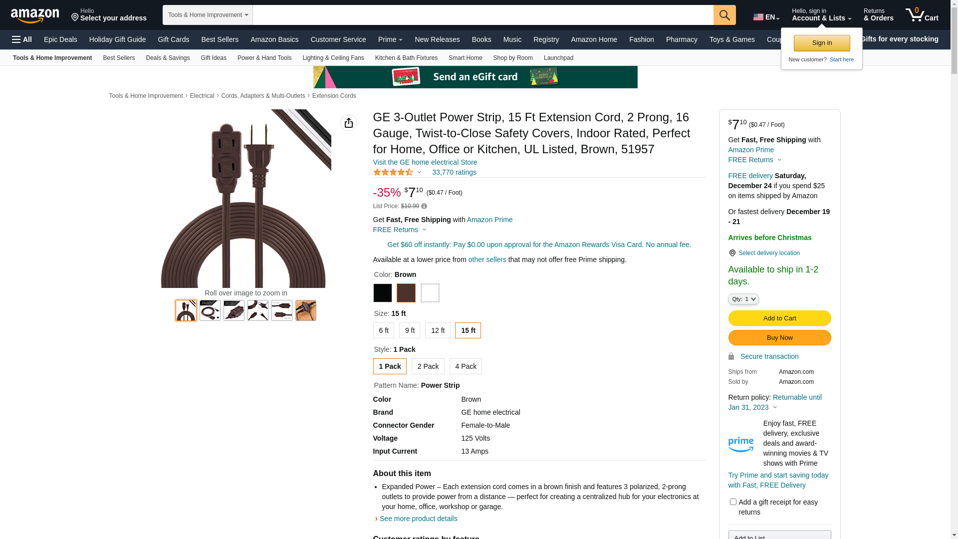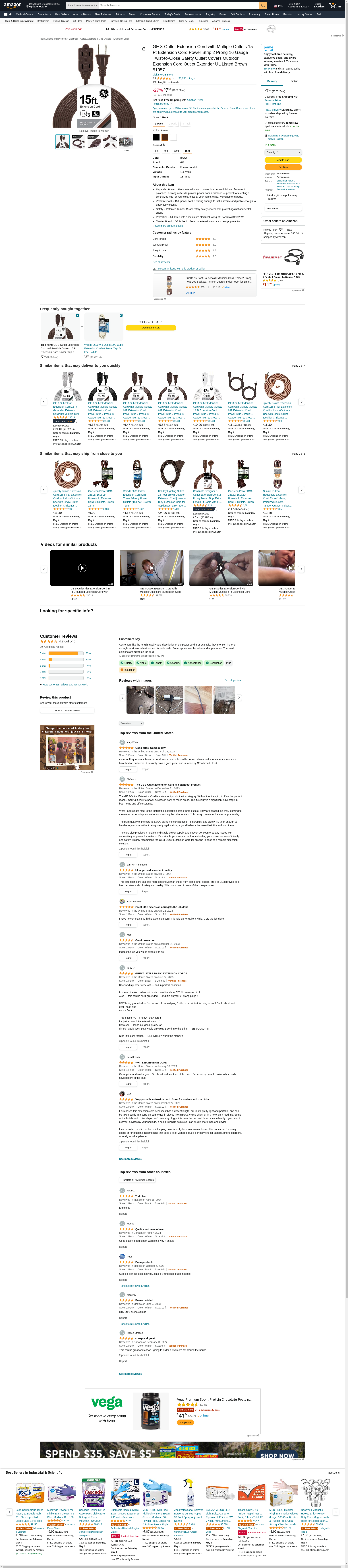 GE 15-Feet Indoor Extension Cord with Tamper Guard, Brown 51957. 3 polarized outlets. Tamper Guard rotating safety co...