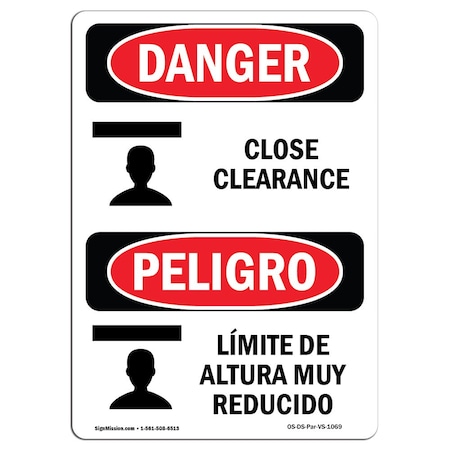 OSHA Danger Sign, Close Clearance Bilingual, 7in X 5in Decal