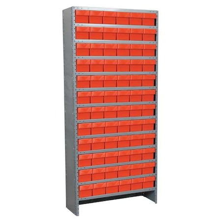 Akro-Mils ASC1879168RED Enclosed Steel Shelving Kit with 72 AkroDrawers, 18" x 36" x 79", Gray/Red