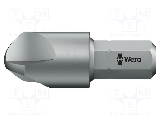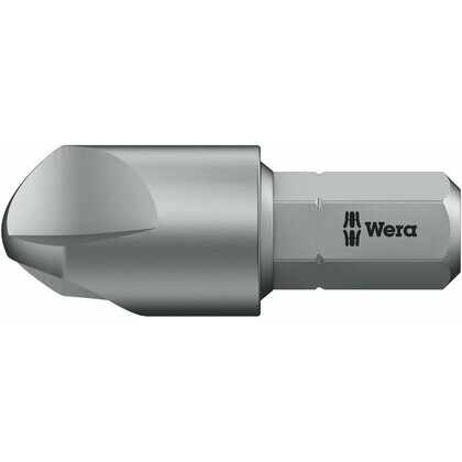 - Wera Bits for hard materials (e.g. metal sheets or structures) prevent premature breakages of the tip, created by the large amounts of peak torque generate to the screw and bit