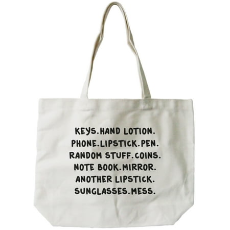 <ul> <li>Funny "Keys, Hand Lotion, Phone, Lipstick, etc" canvas tote bag</li> <li>Stylish Natural Color Tote Design printed on ONE side of the bag</li> <li>Professionally Designed & printed by 365 Printing. Permanent designs don't peel or wash off, Printed Using eco-friendly Water Based Ink</li> <li>Purchase Includes 13 oz. 100% Cotton Canvas Bag W/ Gusset and Premium 365 Printing Inc Brand Packaging Box</li> <li>Due to different computer monitors/calibrations, colors may vary slightly from photos</li> </ul>