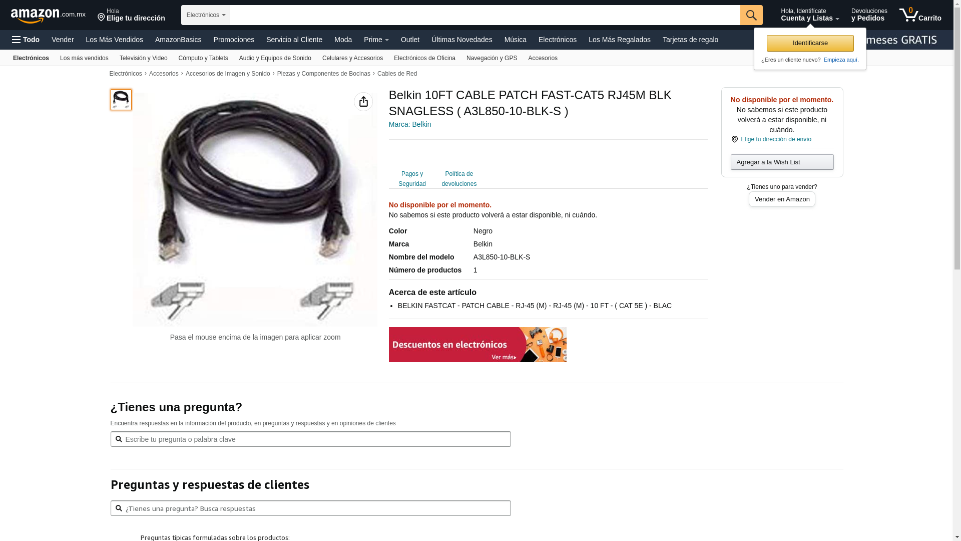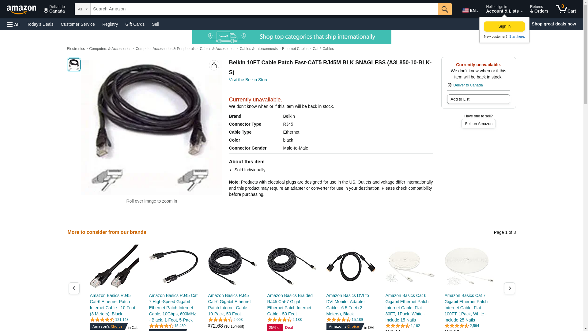 | Feature | BELKIN A3L850-10-BLK-S 10 FT. CAT 5E BLACK COLOR FASTCAT PATCH CABLE SNAGLESS |