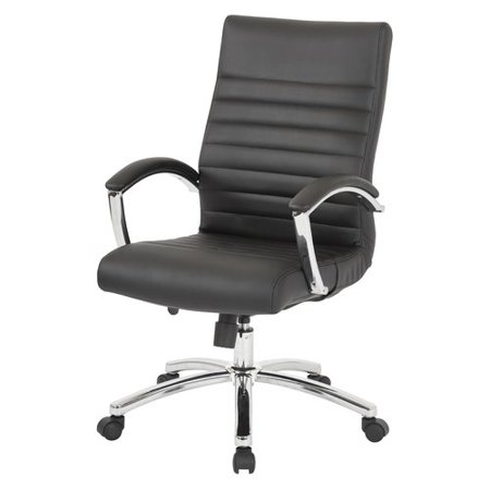 Worksmart Mid-Back Chair, Black Faux Leather, Padded Arms and Chrome Finish Base | HD Supply