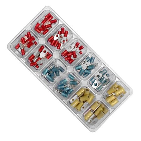 AMP PIDG TERMINAL KIT; Connector Kit Type:Terminals & Splices; Kit Contents:120-Pcs of 2, 4, 6, 8, 10 Stud Size Pre-Insulated Rectangular Tongue Terminals; Product Range:PIDG Series RoHS Compliant: Yes