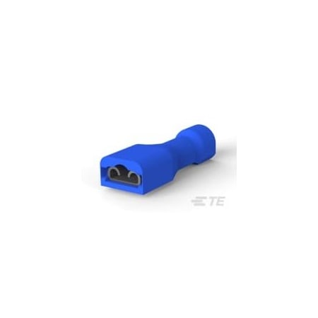 | Feature | Manufacturer: TE Connectivity Product Category: Faston Terminals RoHS: Product: Faston Terminals Series: Wire Gauge: 16-14 Stud / Tab Size: 0.187 in x 0.02 in Insulation: Insulated Color: Blue Gender: Female Contact Material: Brass Brand: TE Connectivity / AMP Insulation Material: Nylon |