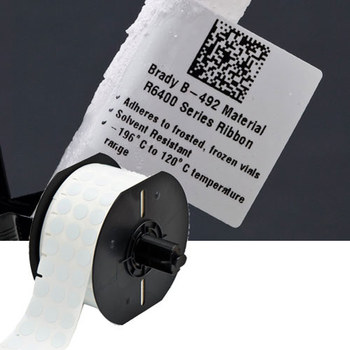 Durable Polyester (B-490) markers are designed for use in laboratory identification applications such as vials, centrifuge, tubes, test tubes, straws and slides. B-490 labels can be applied to frozen surfaces including glass and polypropylene stored in liquid nitrogen White polyester material has a permanent acrylic adhesive and is thermal transfer printable RoHS compliant to 2005/618/EC MCV amendment to RoHS Directive 2002/95/EC