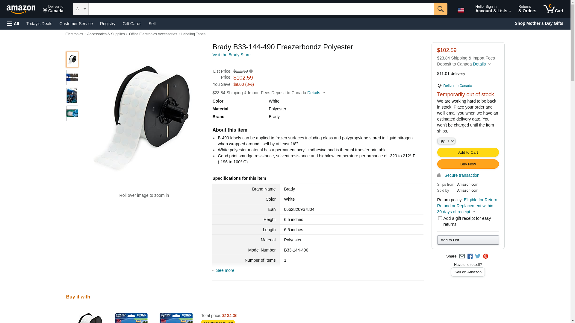 Brady B33-144-490 Freezerbondz Polyester