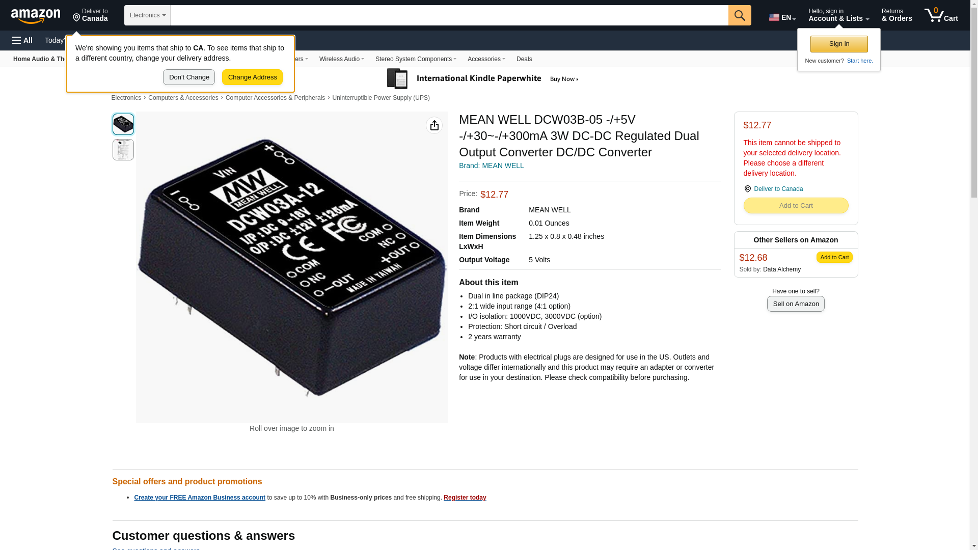 ![]() powersupplymall.com | DCW03B-05 | 1 | -2 | 1 | 1 @ $9.26 |