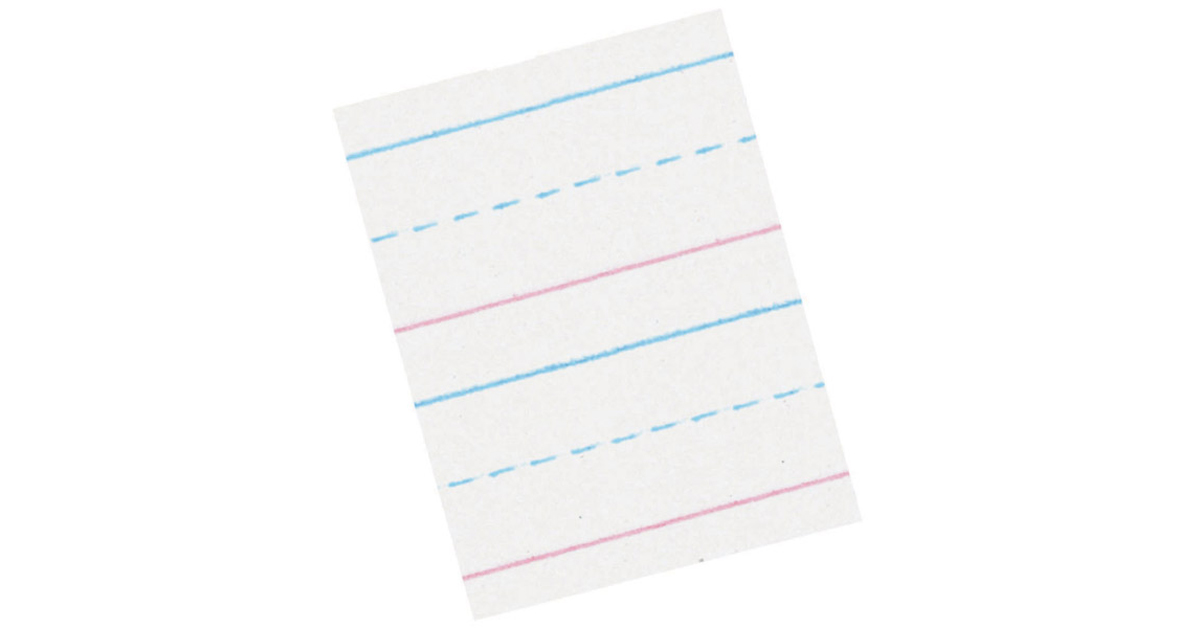 - Clean white sulphite paper is printed with a red baseline and a broken blue midline to make it easy for students to find the headline quickly and easily. Recyclable paper is printed on both sides.