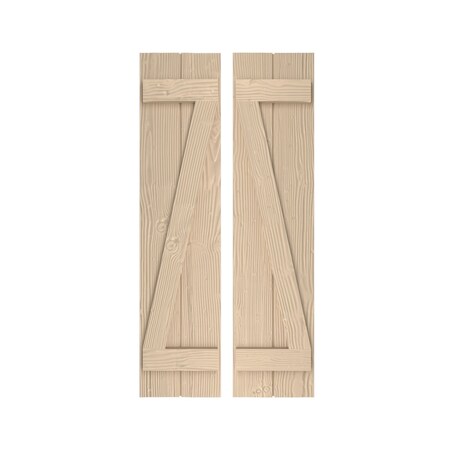 Ekena Millwork SHUBJZ11X46SDPR 11"W x 46"H Rustic Two Board Joined Board-n-Batten Sandblasted Faux Wood Shutters w/Z-Board (Per Pair), Primed Tan