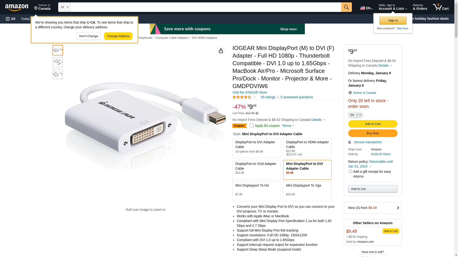 - IOGEAR GMDPDVIW6 Mini DisplayPort to DVI Adapter Cable