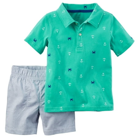 Make early mornings easier with a coordinating 2-piece outfit. This one's complete with classic striped shorts and a printed polo. -- 2-piece set -- Allover print -- Front button placket -- No-pinch elastic waistband -- Shirt: 100% cotton jersey -- Shorts: 100% cotton -- Imported -- Machine washable