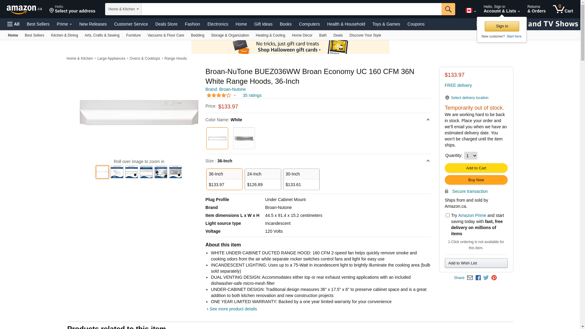 | gordonelectricsupply.com | BUEZ036WW | 1 | Broan-Nutone orders over $375 Usually Ship NextBusiness Day, otherwise 5-7 Days | 1 | 1 @ $99.59 |