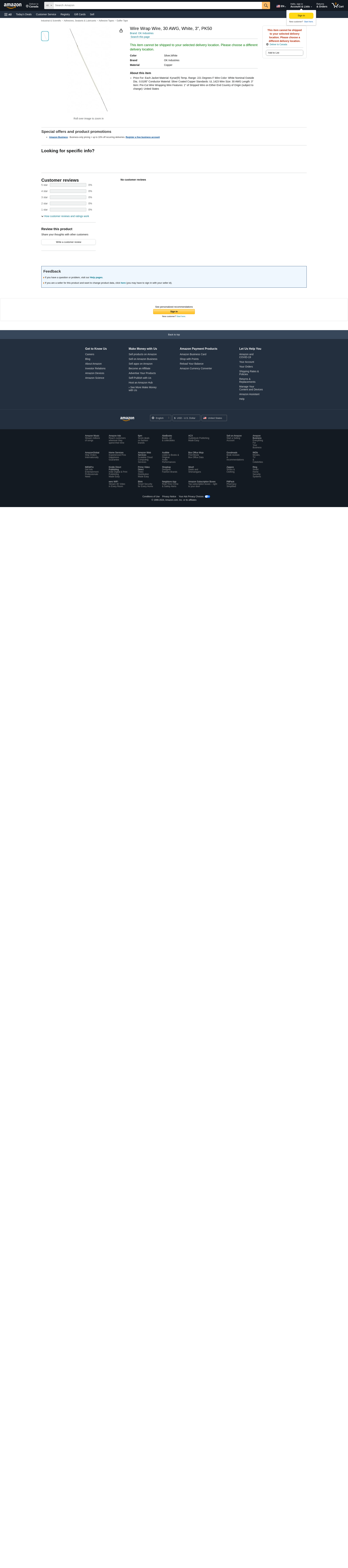 Ok Industries Wire Wrapping Wire, 1 In, 30Awg, Copper, White - 30-W-50-010
