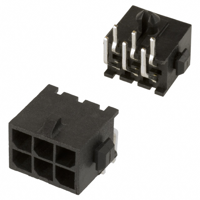 - <b>Price For:</b> Each <b> Series:</b> Micro MATE-N-LOK <b> Pitch Spacing:</b> 3mm <b> Contact Termination:</b> Through Hole Right Angle <b> No. of Contacts:</b> 6 <b> No. of Rows:</b> 2 <b> Gender:</b> Plug <b> Contact Material:</b> Brass <b>RoHS Compliant:</b> Yes