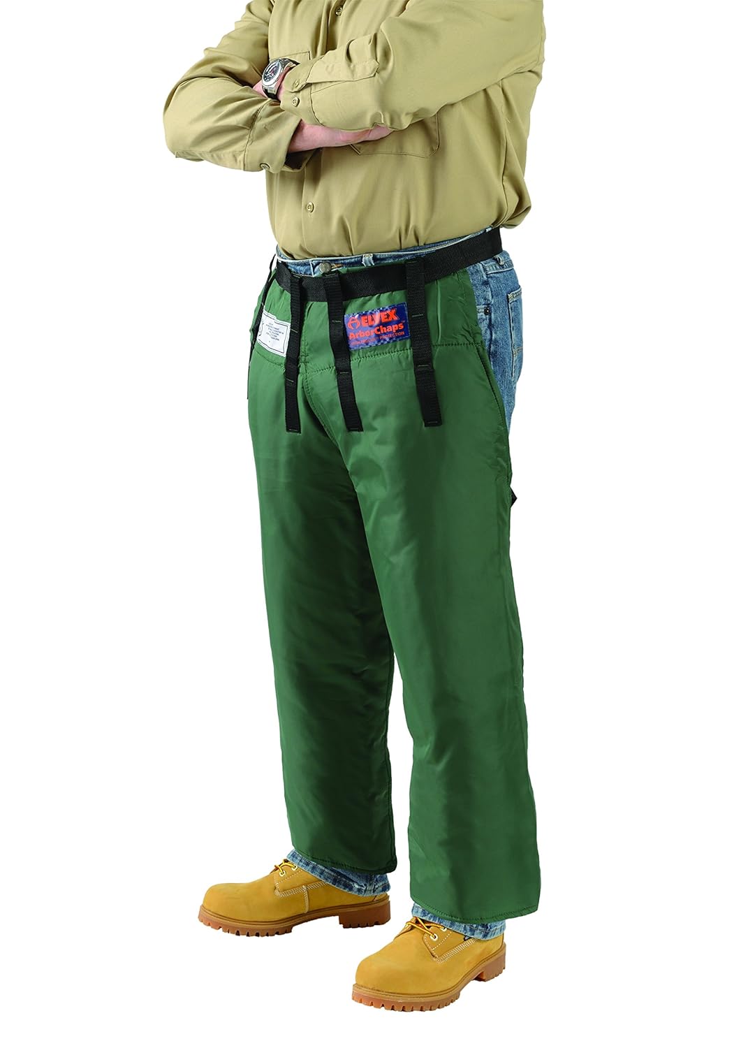 Arbor chaps, apron style, 420 denier, Hunter green, universal size - adjustable from 33 inch - 36 inch.