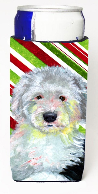Carolines Treasures LH9261MUK Old English Sheepdog Candy Cane Holiday Christmas Michelob Ultra bottle sleeves For Slim C