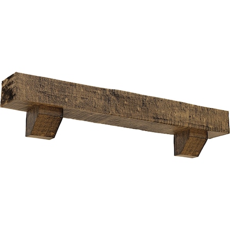 8" H x 12" D x 60" W Rough Cedar Faux Wood Fireplace Mantel Kit w/ Ashford Corbels, Natural Golden Oak
