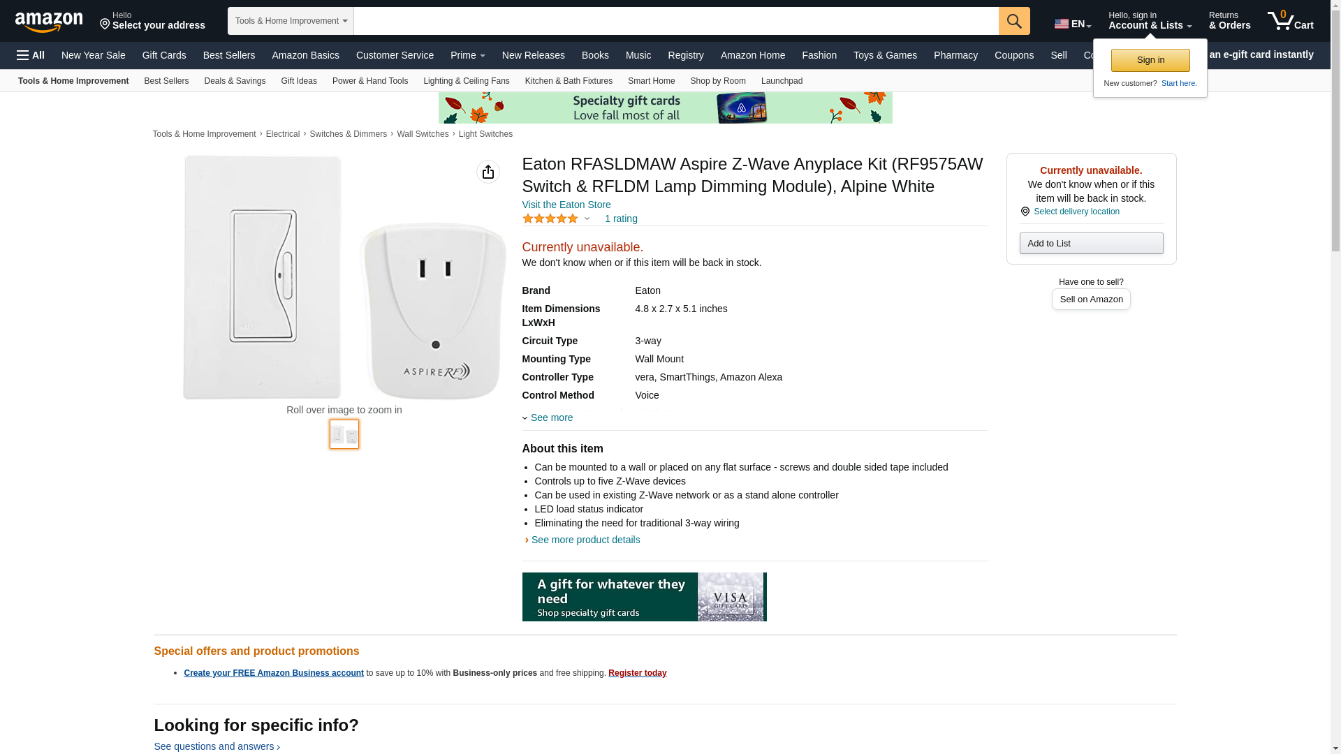 Buy Eaton Wiring RFASLDMAW Anyplace Switch w/ Z-Wave Dimmer Module, Battery Operated, Alpine White on HomElectrical.com. Take advantage of FREE SHIPPING.