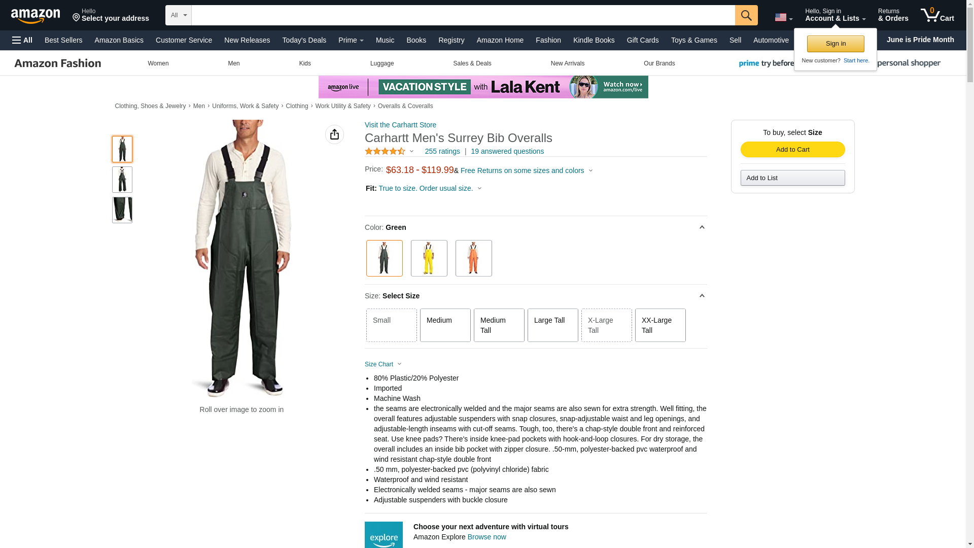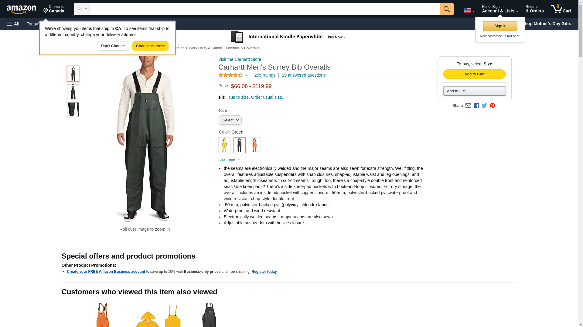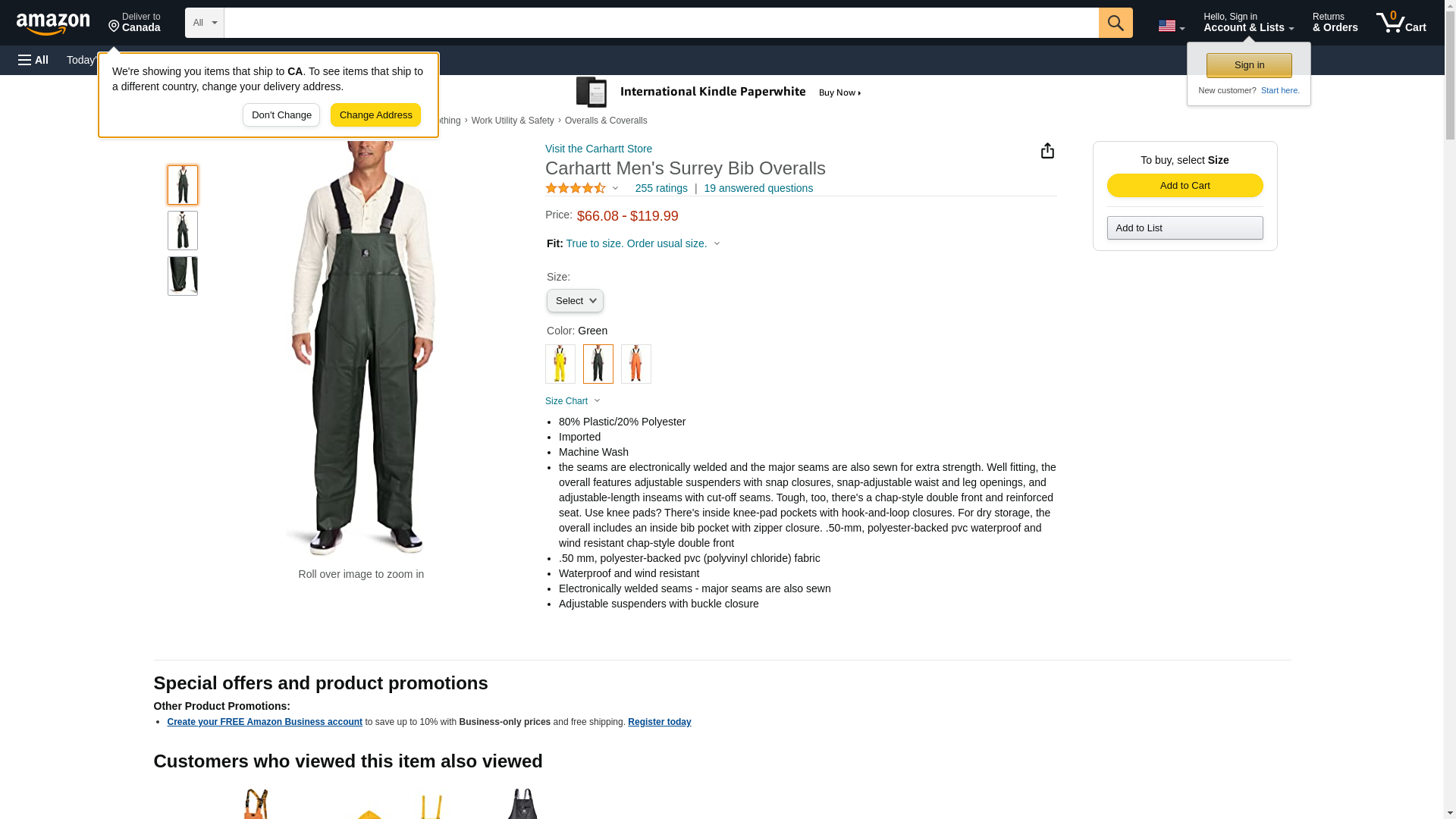 The forecast calls for rain and wind all day. While you� d prefer to stay indoors curled up with a good book (o.k., lounging in your recliner watching sports), you have to work. If you think going to work on a dreary, rainy day is a drag, try having to work IN the rain. We can� t make the rain go away, but we can offer you the waterproof Carhartt Men� s 100101 300 Surrey Rain Bib Overalls.Made of 50-milimeter, polyester-backed PVC (polyvinyl chloride) fabric, these green overalls are waterproof and wind resistant. Wearing these Carhartt overalls in the rain will help to keep you drier and make your day more bearable. In addition to the material being waterproof, all the seams are electronically welded and all the major seams are also sewn for extra strength. With this construction, the rain can try to get in but it won� t stand a chance. And the wind can huff and puff all it wants, but it won� t get these waterproof overalls down. For even more durability, there� s a chap-style double front and reinforced seat. The reinforced seat sounds like a great ideas for your plumber friend. In addition to keeping the elements out, these durable waterproof overalls are all about fit and ease-of-wear. To give you a more customized fit, the Carhartt bib overalls feature adjustable suspenders with snap closure, snap-adjustable waist and leg openings, and adjustable-length inseams with cut-off seams. Use knee pads? There are inside knee-pad pockets with hook-and-loop closures. Keep your phone or other important items safe and dry in the inside bib pocket with zipper closure.When the forecast calls for rain and wind, don� t curse at the meteorologist. Make your day more bearable by wearing a pair of Carhartt Men� s 100101 300 Surrey Rain Bib Overalls.Manufactured Sizes: Regular S-4XL | Tall M-3XL