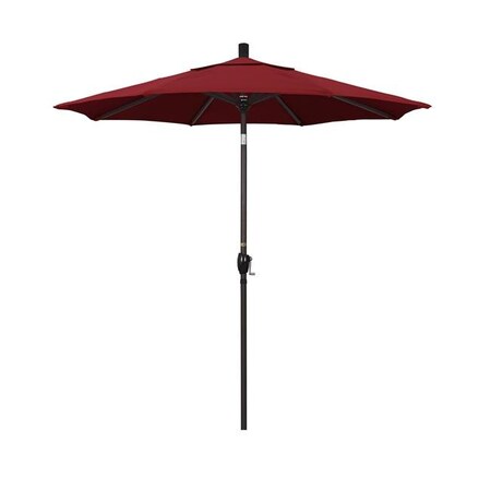 California Umbrella 7.5' Round Aluminum Market Umbrella, Crank Lift, Push Button Tilt, Bronze Pole, Olefin Red