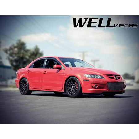 WellVisors Window Visors Wind Deflectors Compatible With Mazda 2003-2008 Mazda 6 Mazda6 Sedan With Black Trim Rain Guards 3-847MZ007