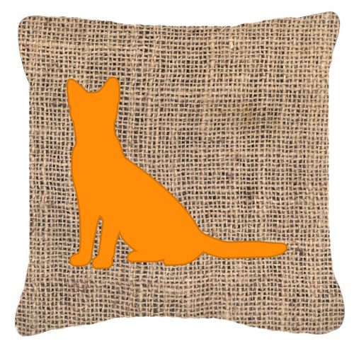 Carolines Treasures BB1071-BL-OR-PW1414 Cat Burlap And Orange Indoor & Outdoor Fabric Decorative Pillow