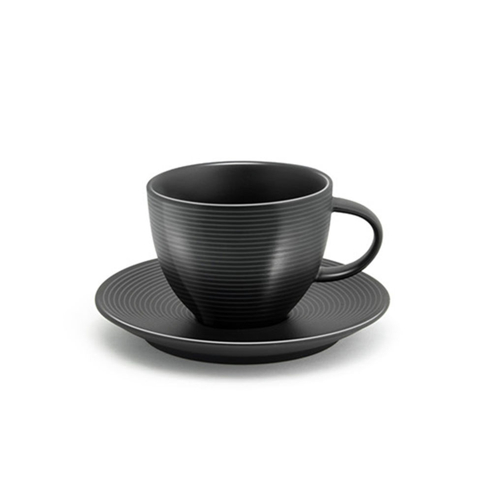 Front of the House DCS024BKP23 Spiral Ink 5 3/4" Semi-Matte Black Porcelain Saucer - 12/Case