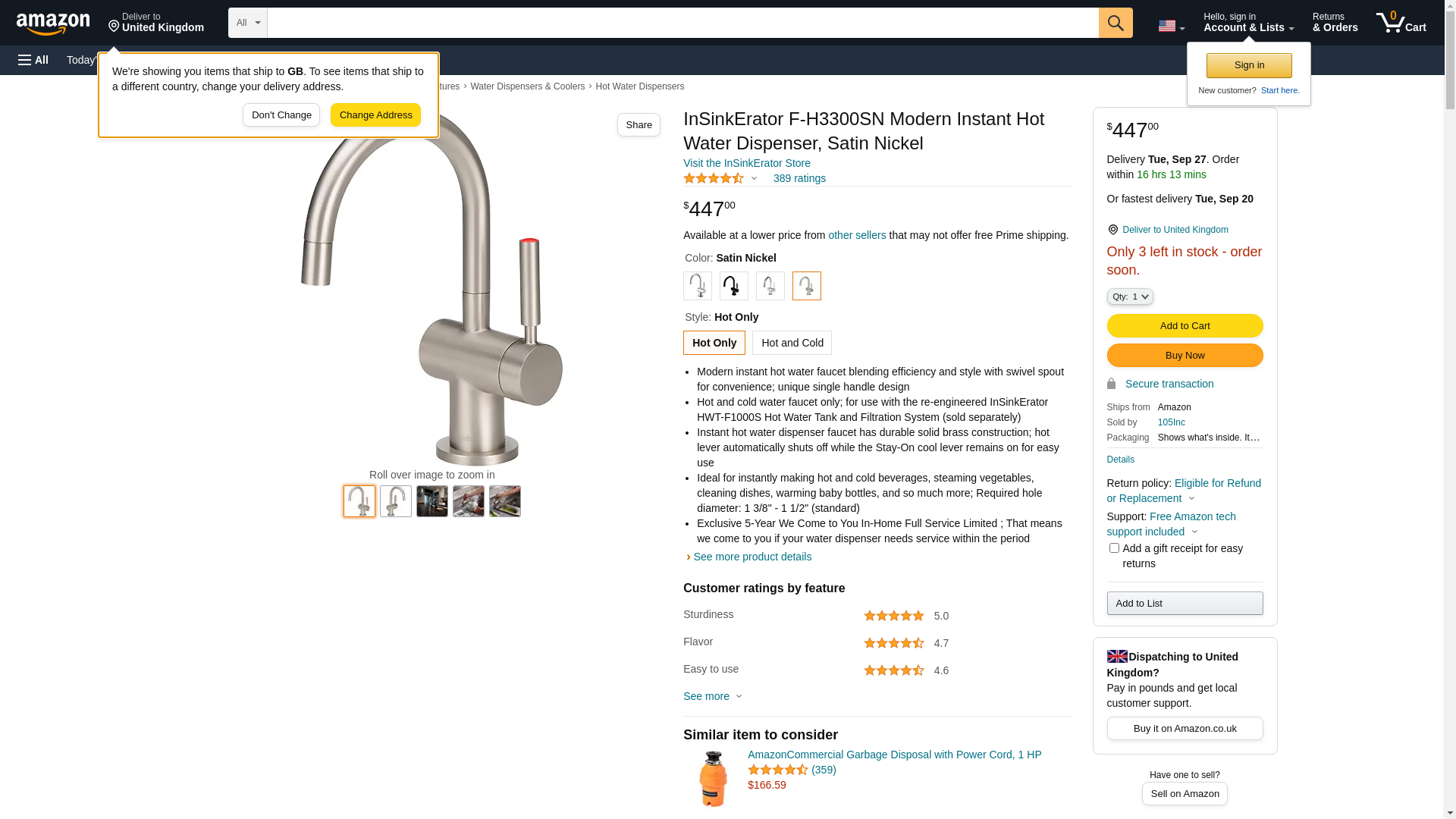 - Hot and cold water faucet only; for use with the re-engineered InSinkErator HWT-F1000S Hot Water Tank and Filtration System (sold separately)