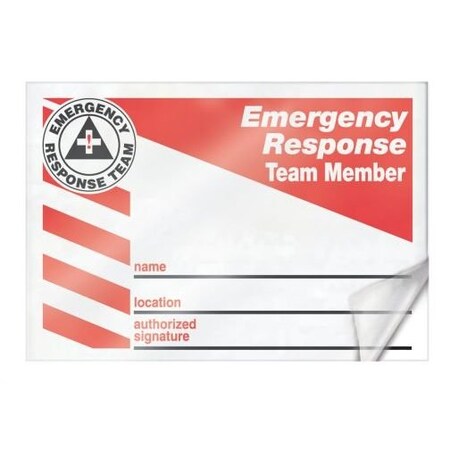 <BR> Labels EMERGENCY RESPONSE TEAM MEMBER (WALLET CARD) 2 1/8" x 3 3/8" Self-Laminating Plastic (5 7/8" x 3 3/8"). Safety Labels<BR>