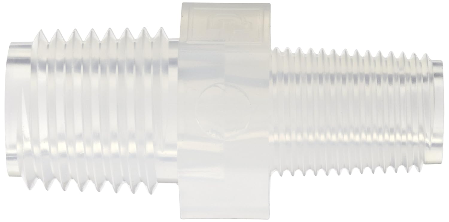 Parker PFA Pipe Fitting, Reducer Nipple, 3/4" NPT Male X 1/2" NPT Male, 0.65" Length