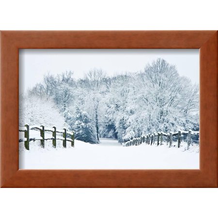 <ul> <li>Title: Path through English Rurual Countryside in Winter with Snow</li> <li>Artist: Veneratio</li> <li>Product Type: Framed Art Print</li> <li>Framed in SOHO Pecan</li> <li>Arrives ready-to-hang for fast, simple installation</li> <li>Framed Size: 14x10 in.</li> <li>Handcrafted in the USA</li> </ul>