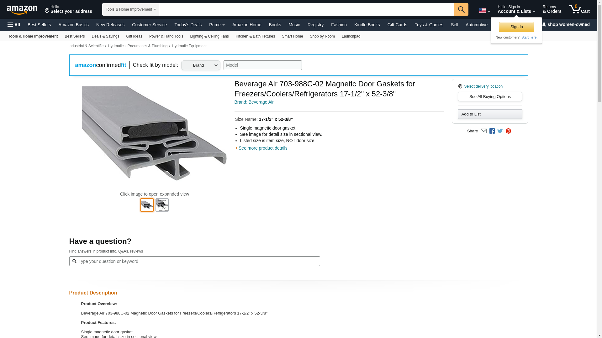 <b>Product Overview:</b><br><br>Beverage Air 703-988C-01 Magnetic Door Gaskets for Freezers/Coolers/Refrigerators 24" x 52-3/8"<br><br> <b>Product Features:</b><br><br> Single magnetic door gasket.<br> See image for detail size in sectional view.<br> Listed size is item size, NOT door size.<br>