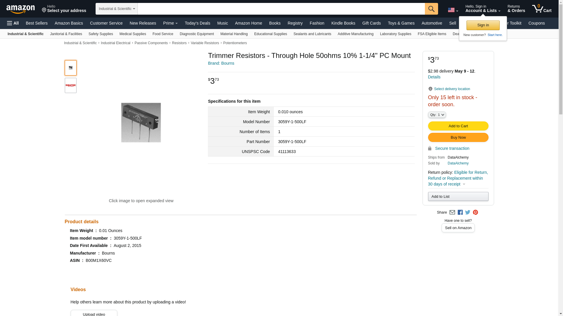 Bourns 3059Y-1-500LF Resistor Trimmers, Potentiometer and Rheostat