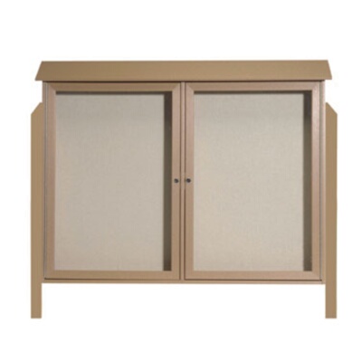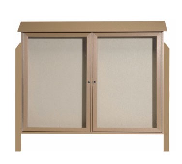 Aarco Products PLD4052-2DPP-8 Weathered Wood Two Hinged Doors Plastic Lumber Message Center w / Vinyl Posting Surface, Posts 40