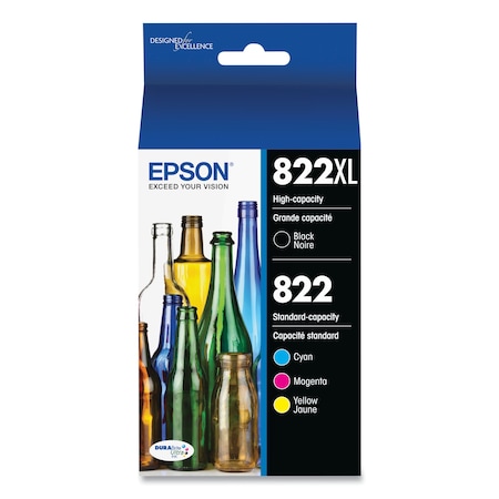 Epson T822XL-BCS (T822XL/T822) DURABrite Ultra High-Yield/Standard Ink, Black/Cyan/Magenta/Yellow