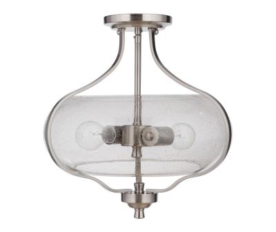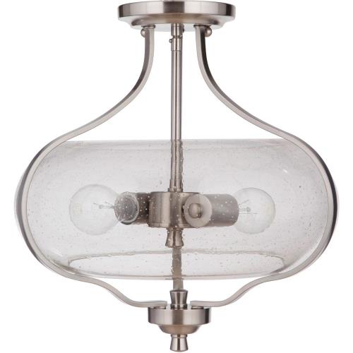 Craftmade 49952-BNK Serene Clear Seeded Glass Semi Flush Ceiling Lighting, 2-Light 120 Watts, Brushed Polished Nickel