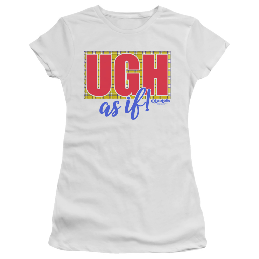 Trevco PAR713-JS-4 Clueless & Ugh As If-Short Sleeve Junior Sheer T-Shirt, White - Extra Large