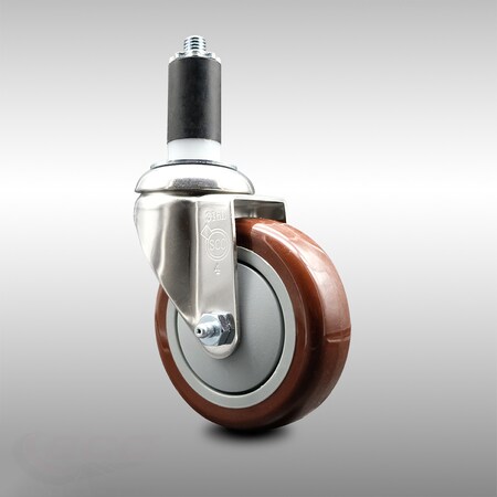 Service Caster Brand 4 Inch 316 Stainless Steel Light Duty Expanding Stem Caster Wheel Maroon Polyurethane Wheel and 1-1/4” Stem – 350lbs./Caster – Swivel Caster